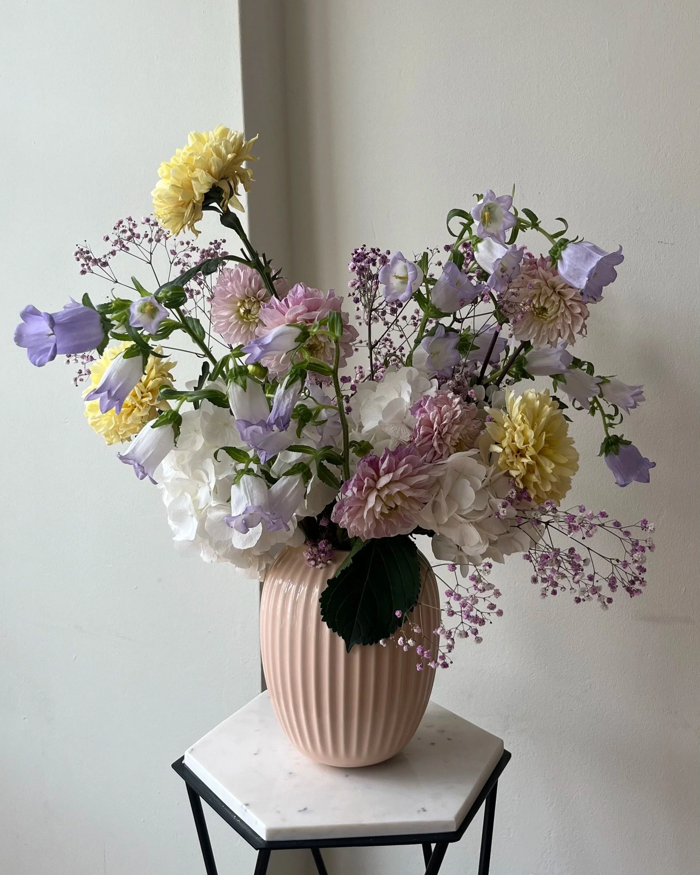 I was inspired by seeing Taylor Swift live and wanted to create a floral arrangement inspired by one of her eras. I chose ‘Lover’ as the theme, as it felt like a perfect reflection of Huglig - a place where love meets hygge. I visited Columbia Road Flower Market to select a vibrant mix of flowers, playing with colours and textures to create a fun, sculptural arrangement. From certain angles, the design even takes the shape of a heart, capturing both the playful energy of the era and the warmth and intimacy at the heart of hygge.
